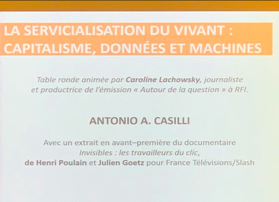 J’ai ensuite présenté mes recherches lors d’une conférence intitulée La servicialisation du vivant : capitalisme, données et machines.